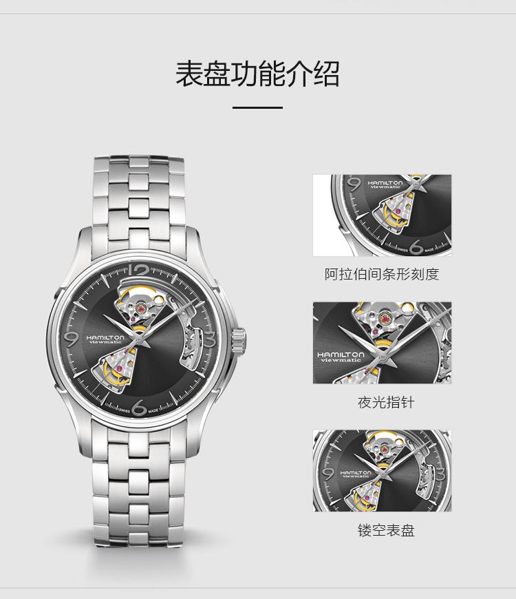 【买赠 买手表 送擦表布】Hamilton/汉米尔顿 瑞士手表 爵士系列 镂空表盘 条形刻度 开心腕表 汉米男表 自动机械腕表 H32565185 watch 全球联保