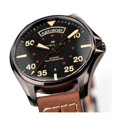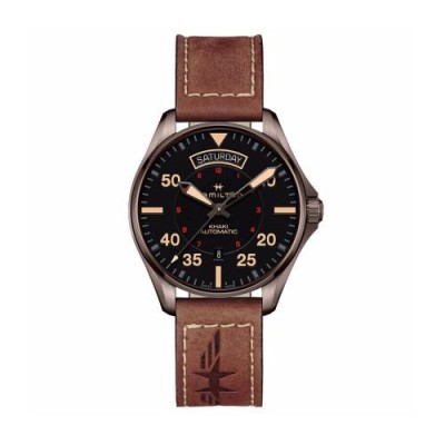 Hamilton/漢密爾頓瑞士手錶卡其航空飛行員系列星際穿越同款自動機械男錶H64605531黑盤深棕色皮帶42mm