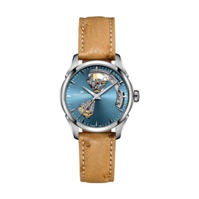 Hamilton/汉米尔顿瑞士手表 爵士系列 OPEN HEART AUTO 自动机械女表 H32215840 36mm雾蓝色盘鸵鸟皮