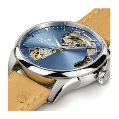 Hamilton/漢密爾頓瑞士手錶爵士系列OPEN HEART AUTO自動機械女錶H32215840 36mm霧藍色盤鴕鳥皮