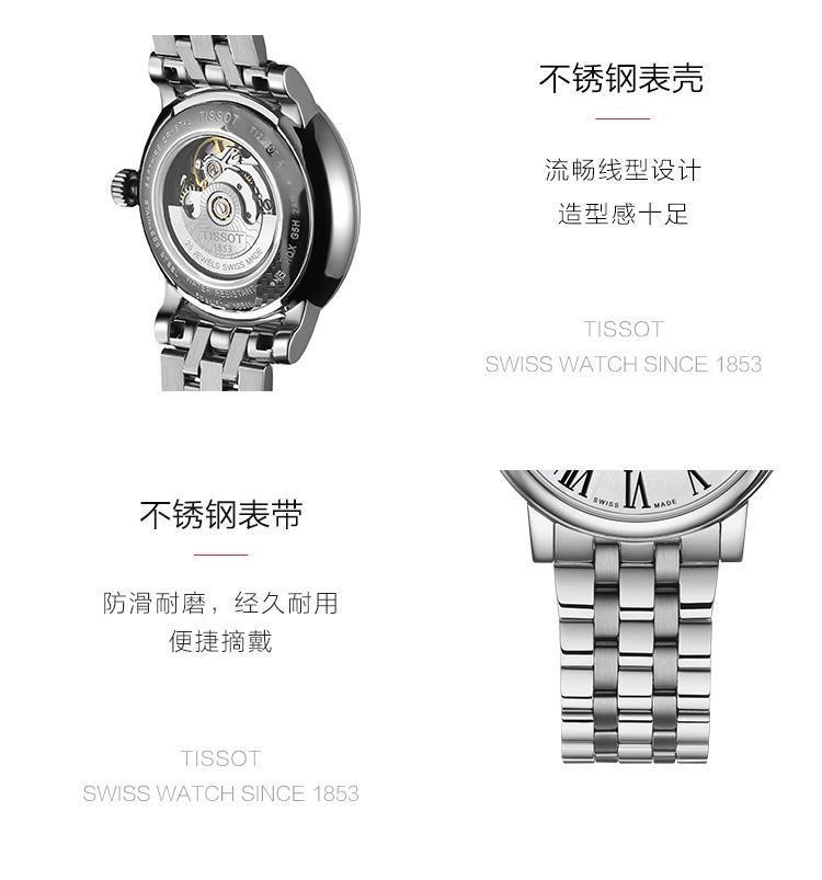 TISSOT/天梭瑞士手錶卡森臻我系列自動機械女士腕表鋼帶銀盤T122.207.11.033.00