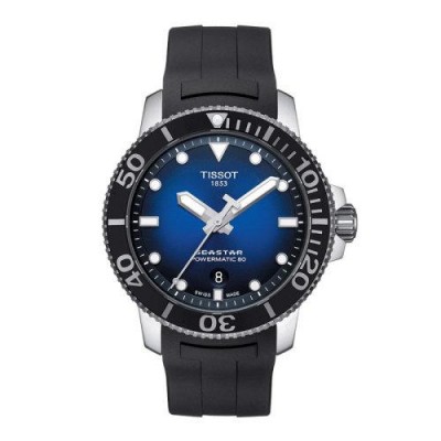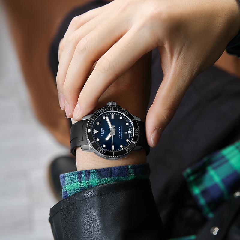 TISSOT/天梭瑞士手錶海星系列橡膠錶帶自動機械運動潜水男士腕表皮帶藍盤T120.407.17.041.00