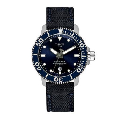 TISSOT/天梭瑞士手錶海星系列織物自動機械運動潜水男士腕表皮帶藍盤T120.407.17.041.01