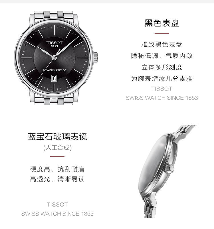 TISSOT/天梭瑞士手錶卡森臻我系列鋼帶自動機械男士腕表鋼帶黑盤T122.407.11.051.00