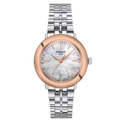 首頁 > 腕表 > 天梭 > 【包稅】預定款1-2周TISSOT/天梭星環系列18K金玫瑰金錶殼精鋼錶帶女士石英腕表33毫米