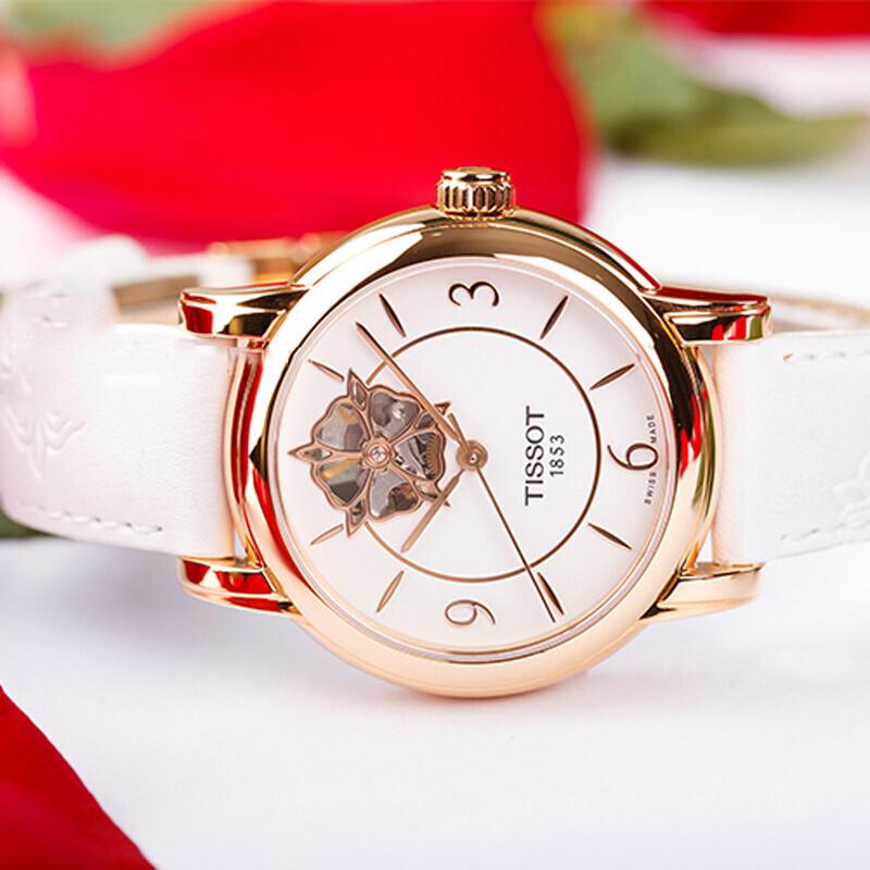 【正品盒装】TISSOT/天梭 心媛系列 白盘镀镂空 数字与条丁刻度 白皮带 机械女表 T050.207.37.017.04