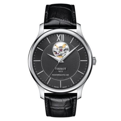 【包税】现货 TISSOT/天梭  俊雅系列精钢表壳黑盘黑色皮质表带男士80机芯自动机械腕表 40毫米