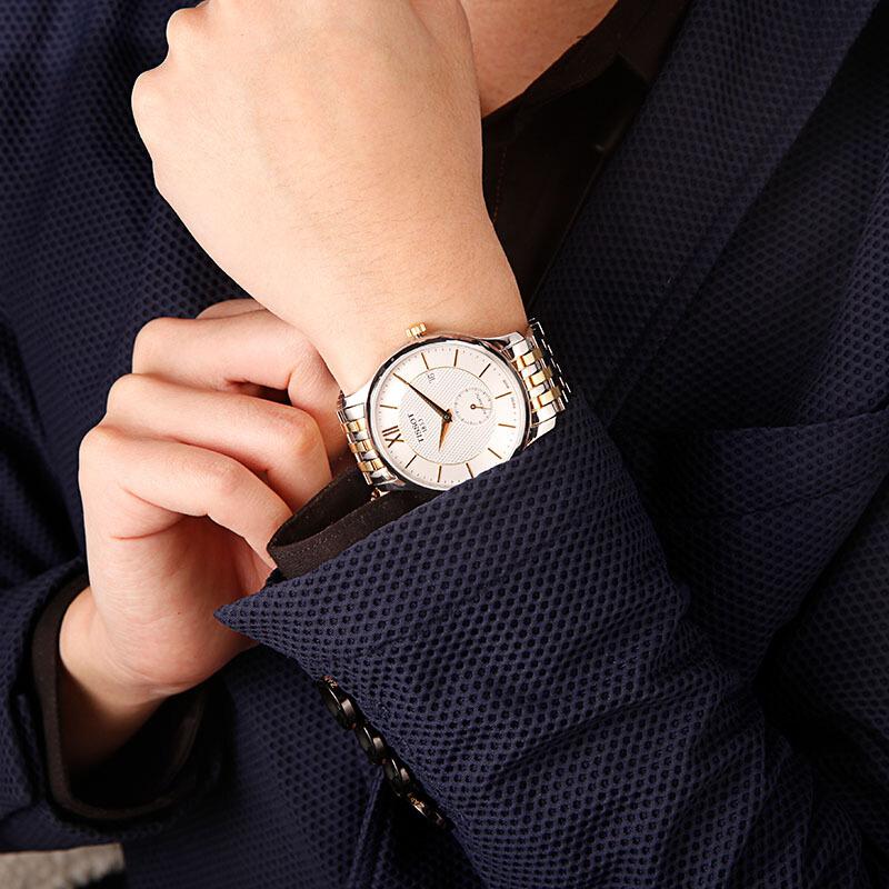 TISSOT/天梭瑞士手錶俊雅系列行事曆自動機械機芯男士腕表間金銀盤T063.428.22.038.00