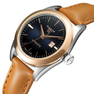 TISSOT/天梭T My Lady系列簡約霧霾藍錶盤行事曆功能機械女錶