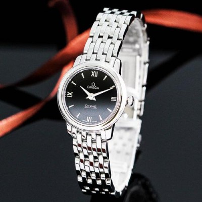 OMEGA/欧米茄瑞士手表 碟飞系列石英机芯女士腕表 钢带黑盘424.10.24.60.01.001
