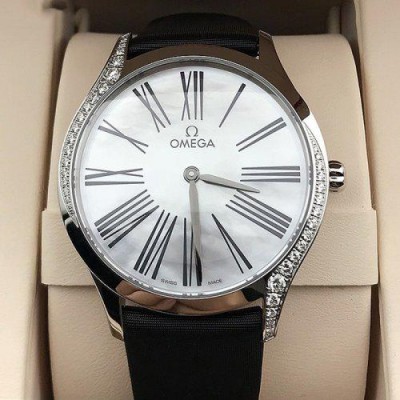 首頁 > 腕表 > 歐米茄 > OMEGA/歐米茄瑞士手錶碟飛系列鑲鑽石英女士腕表皮帶白盤428.17.36.60.05.001