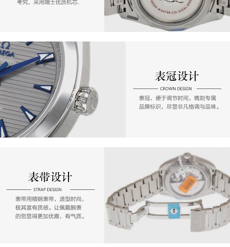 OMEGA/歐米茄瑞士手錶海馬系列行事曆自動機械男士腕表鋼帶灰盤220.10.41.21.06.001