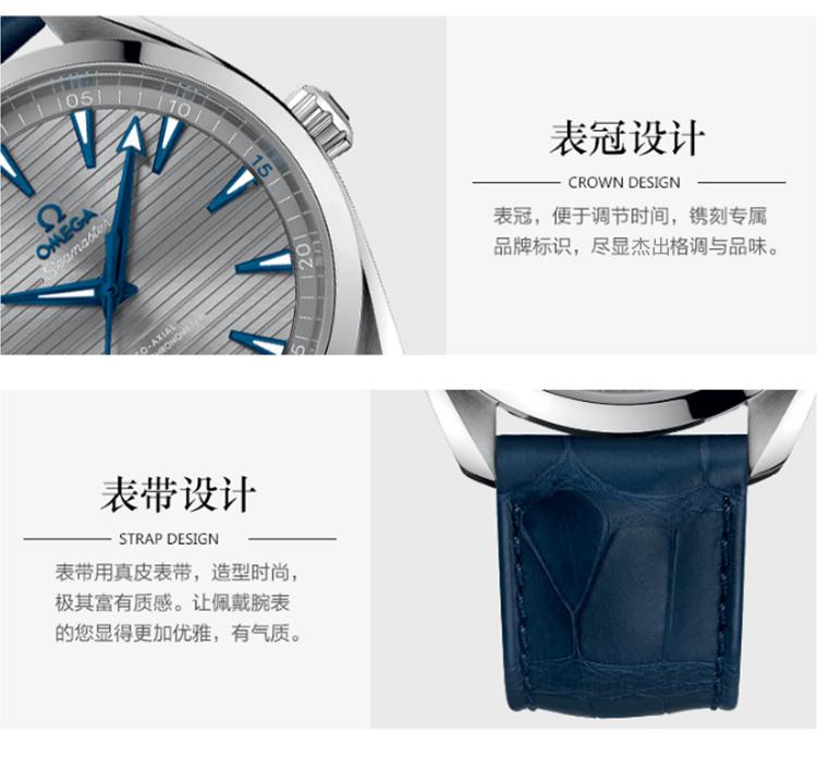 OMEGA/欧米茄瑞士手表 海马系列日历自动机械男士腕表 皮带灰盘220.13.41.21.06.001