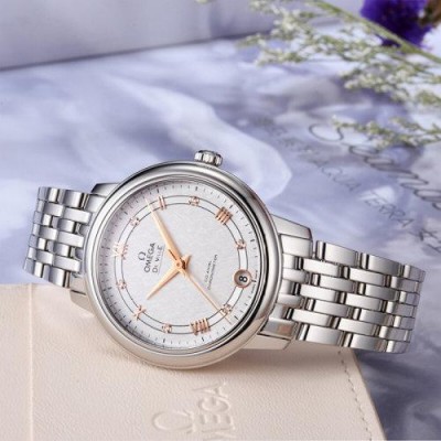 OMEGA/欧米茄瑞士手表 碟飞系列日历镶钻自动机械女士腕表 钢带银盘424.10.33.20.52.001