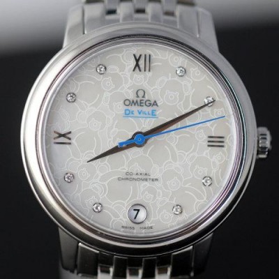 OMEGA/歐米茄瑞士手錶碟飛系列行事曆鑲鑽自動機械女士腕表鋼帶白盤424.10.33.20.55.004