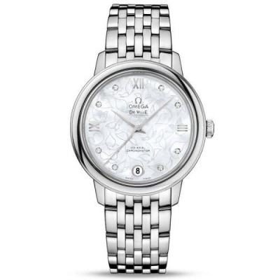 OMEGA/歐米茄瑞士手錶碟飛系列行事曆鑲鑽自動機械女士腕表鋼帶白盤424.10.33.20.55.001