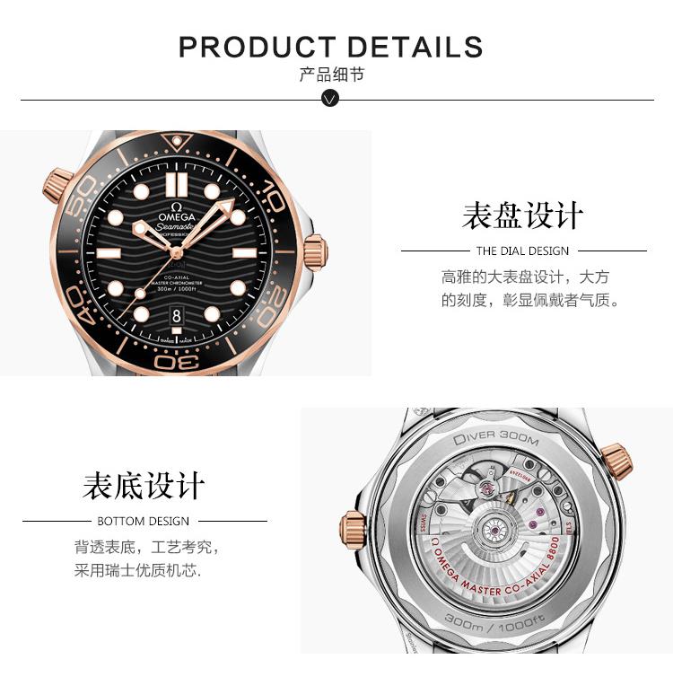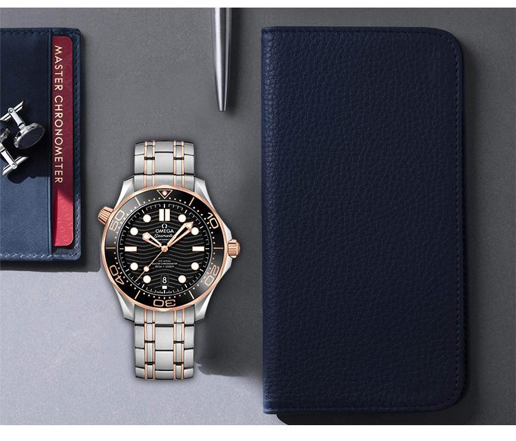 OMEGA/歐米茄瑞士手錶海馬系列行事曆自動機械男士腕表鋼帶黑盤210.20.42.20.01.001