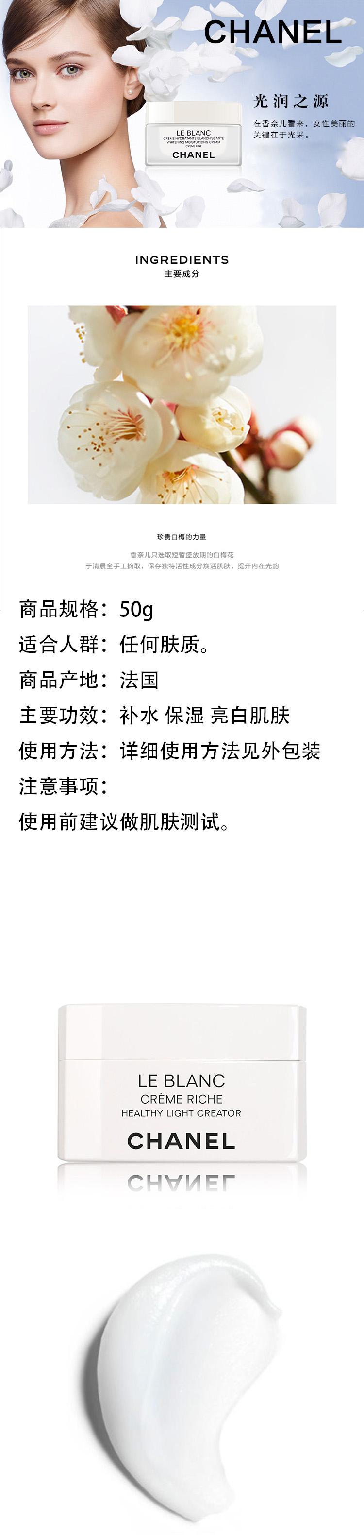 預計5-7天發貨CHANEL/香奈兒光采透白麵霜50g輕盈版