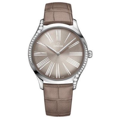 OMEGA/欧米茄瑞士手表 碟飞系列罗马刻度石英机芯女士腕表 钢带啡盘428.18.39.60.13.001
