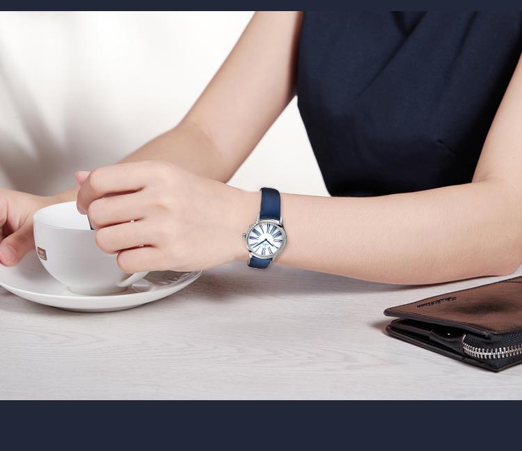 OMEGA/欧米茄瑞士手表 碟飞系列镶钻石英女士腕表 皮带蓝盘428.17.36.60.04.001