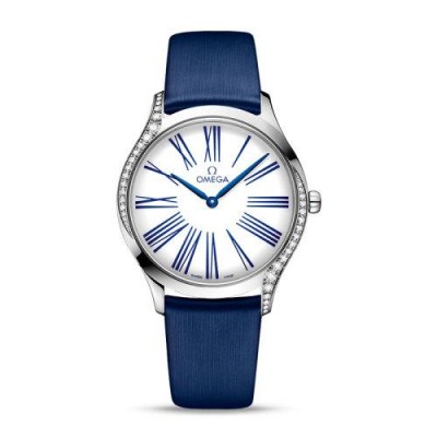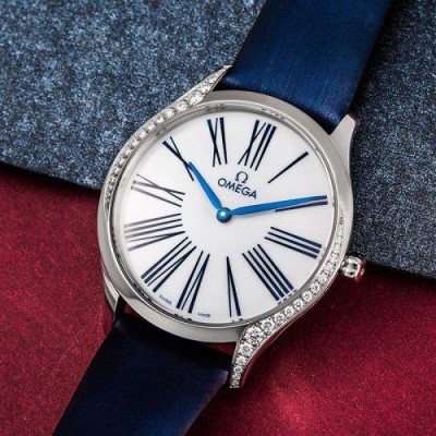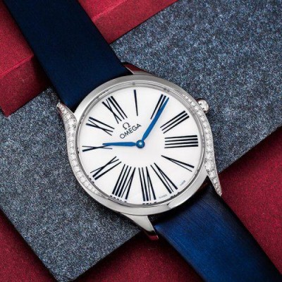 首頁 > 腕表 > 歐米茄 > OMEGA/歐米茄瑞士手錶碟飛系列鑲鑽石英女士腕表皮帶藍盤428.17.36.60.04.001