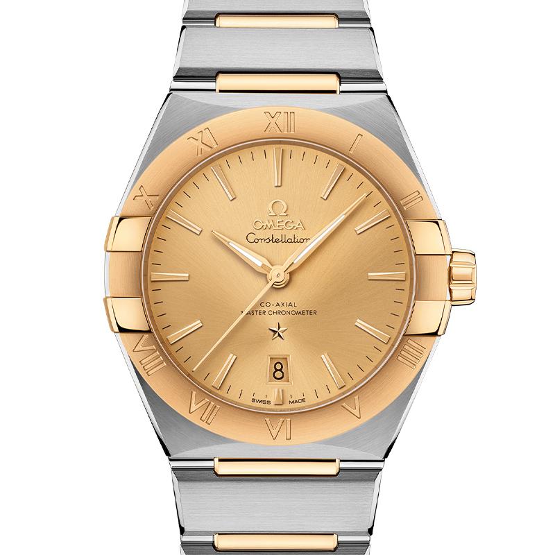 OMEGA/欧米茄瑞士手表 星座系列日历自动机械机芯商务男士腕表 钢带黄盘131.20.39.20.08.001