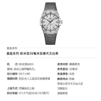OMEGA/歐米茄瑞士手錶星座系列行事曆自動機械機芯商務防磁男士腕表皮帶灰盤131.13.39.20.06.001