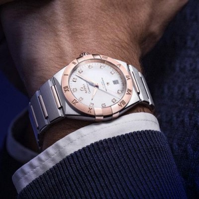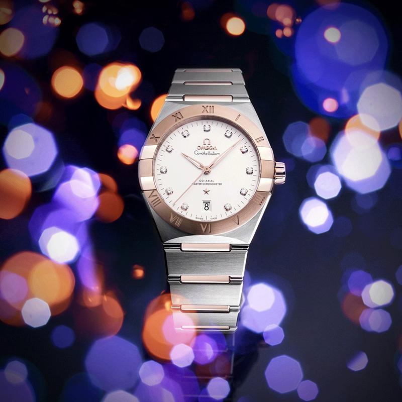 OMEGA/欧米茄瑞士手表 星座系列日历镶钻自动机械机芯商务男士腕表 钢带银盘131.20.39.20.52.001
