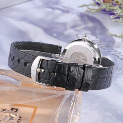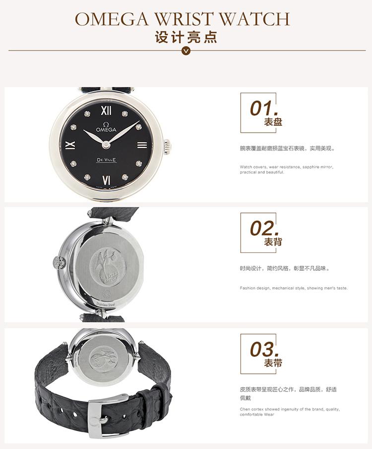 OMEGA/歐米茄瑞士手錶碟飛系列鑲鑽女士石英腕表皮帶黑盤424.13.27.60.51.001