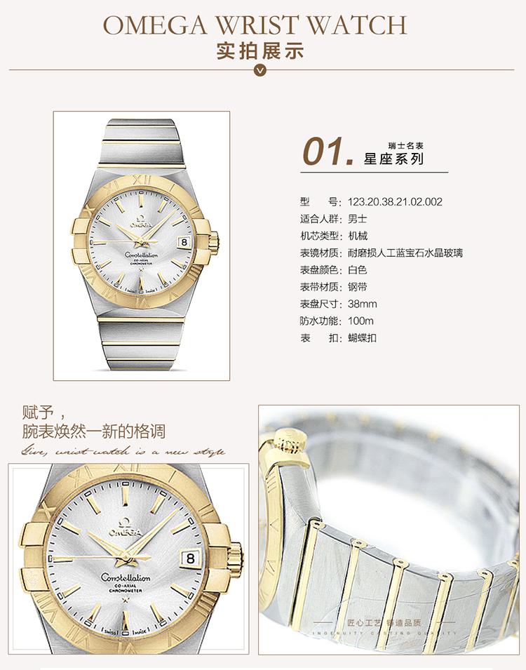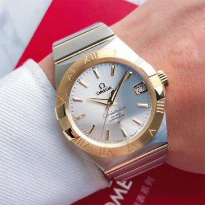 OMEGA/歐米茄瑞士手錶星座系列行事曆自動機械男士腕表鋼帶銀盤123.20.38.21.02.002