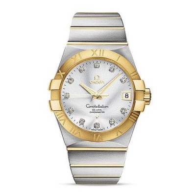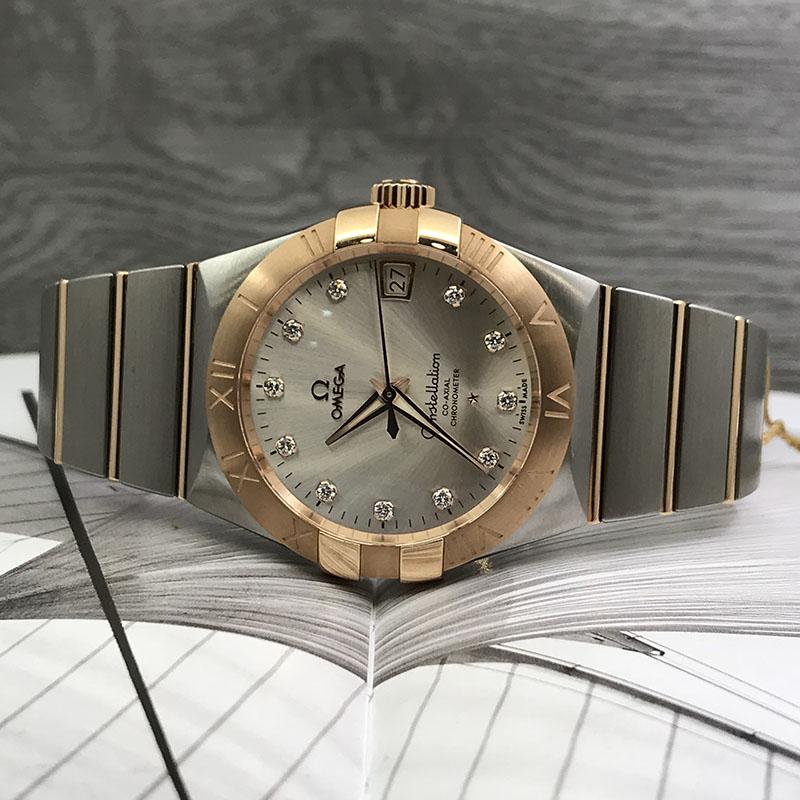 OMEGA/欧米茄瑞士手表 星座系列日历镶钻自动机械防水男士腕表 钢带银盘123.20.38.21.52.002