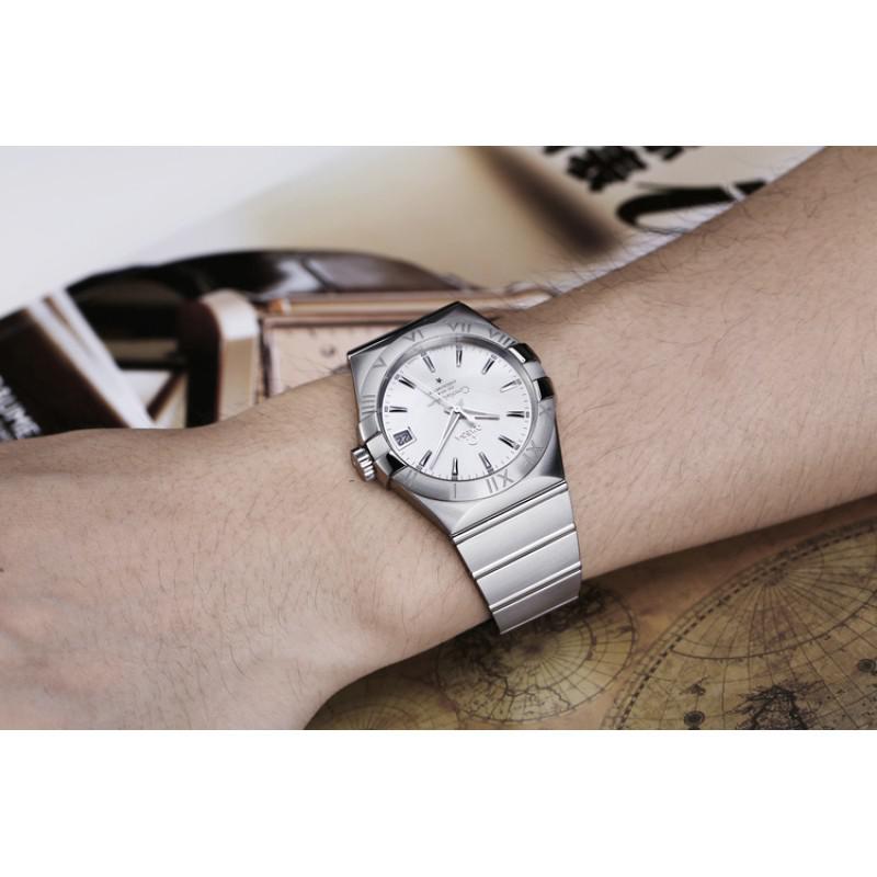 OMEGA/欧米茄瑞士手表 星座系列日历自动机械男士腕表 钢带银盘123.10.38.21.02.001