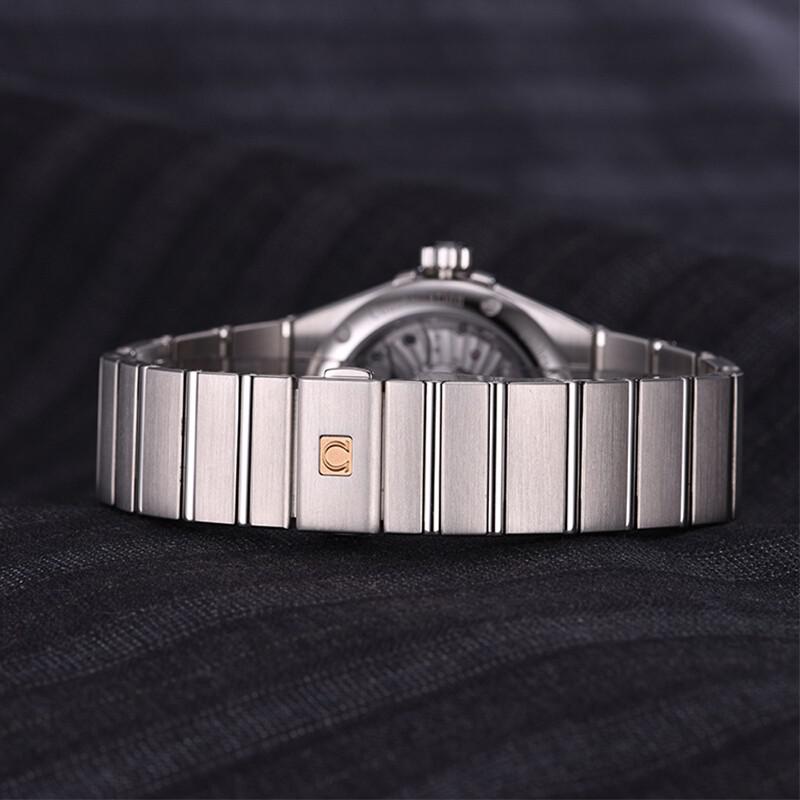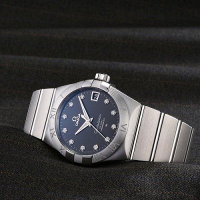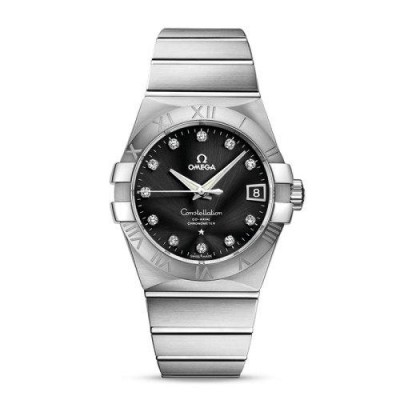 OMEGA/欧米茄瑞士手表 星座系列日历镶钻自动机械男士腕表 钢带黑盘123.10.38.21.51.001