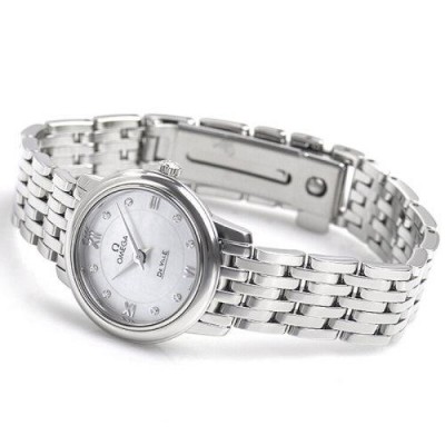 OMEGA/欧米茄瑞士手表 碟飞系列镶钻石英机芯女士腕表 钢带白盘424.10.24.60.55.001