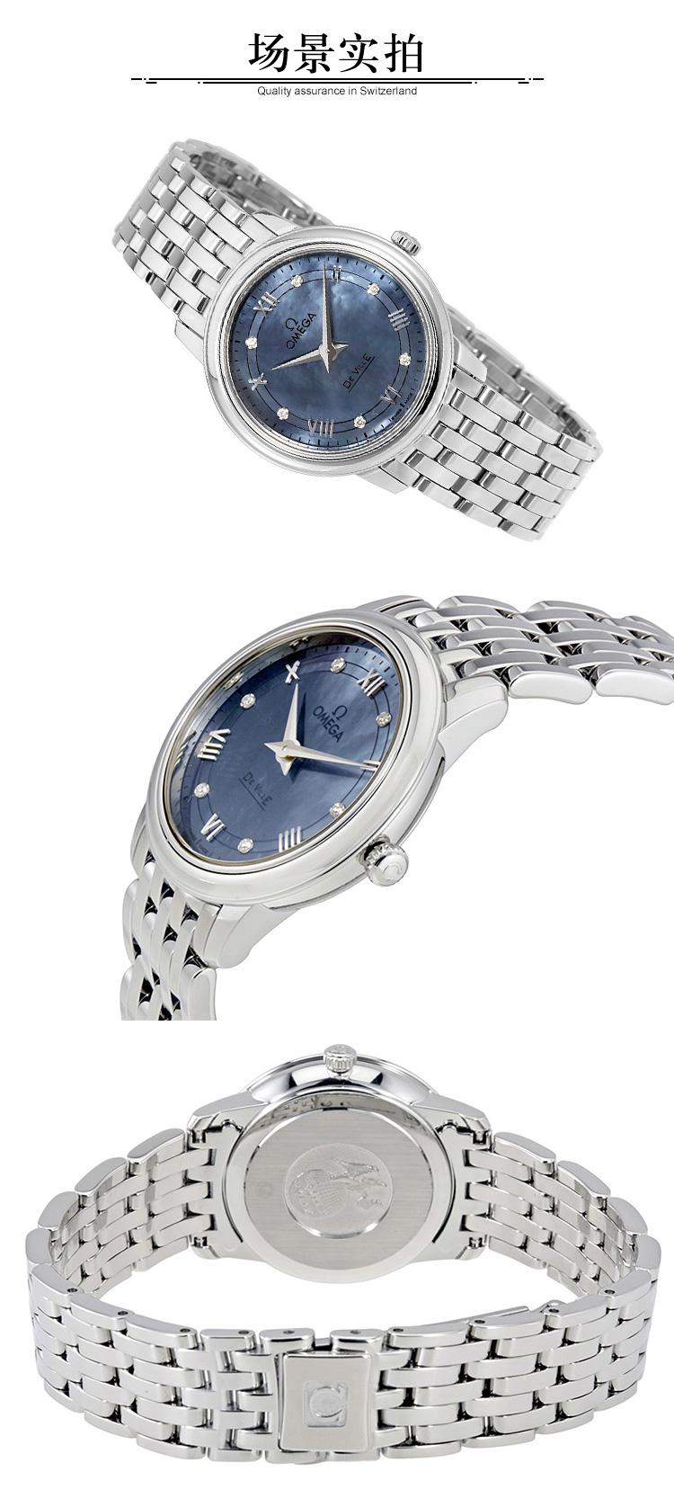 OMEGA/欧米茄瑞士手表 碟飞系列镶钻石英机芯女士腕表 钢带蓝盘424.10.27.60.57.001