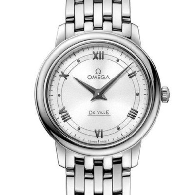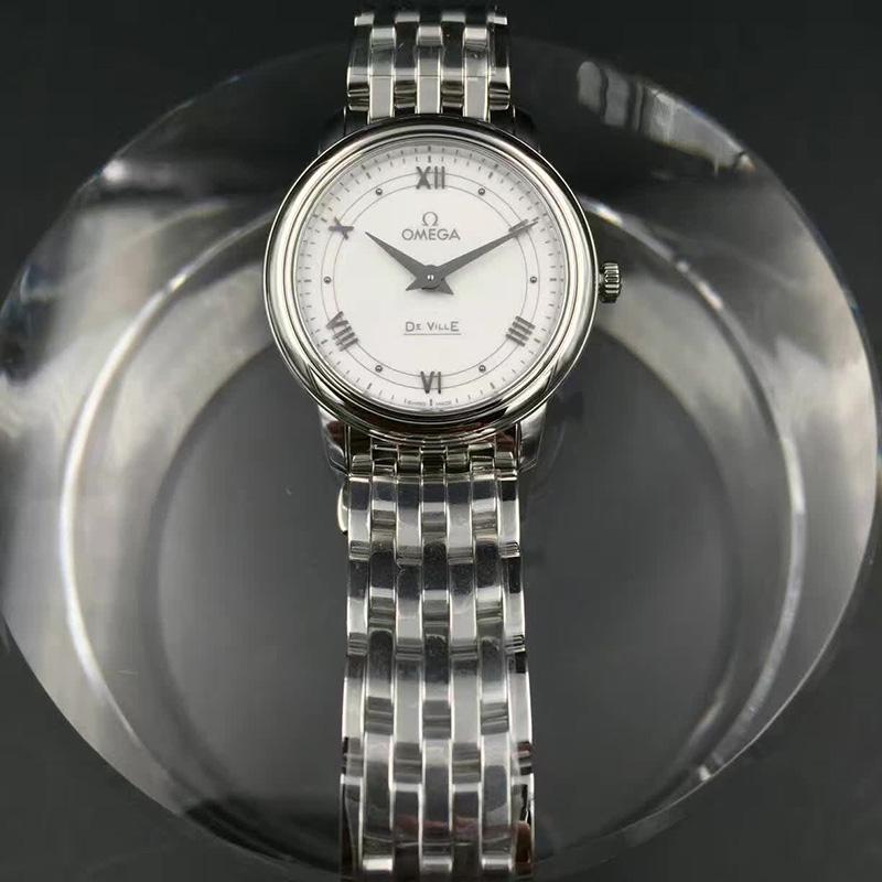 OMEGA/歐米茄瑞士手錶碟飛系列羅馬刻度石英機芯女士腕表鋼帶白盤424.10.27.60.04.001