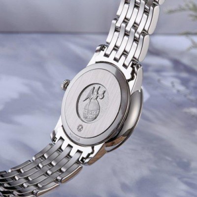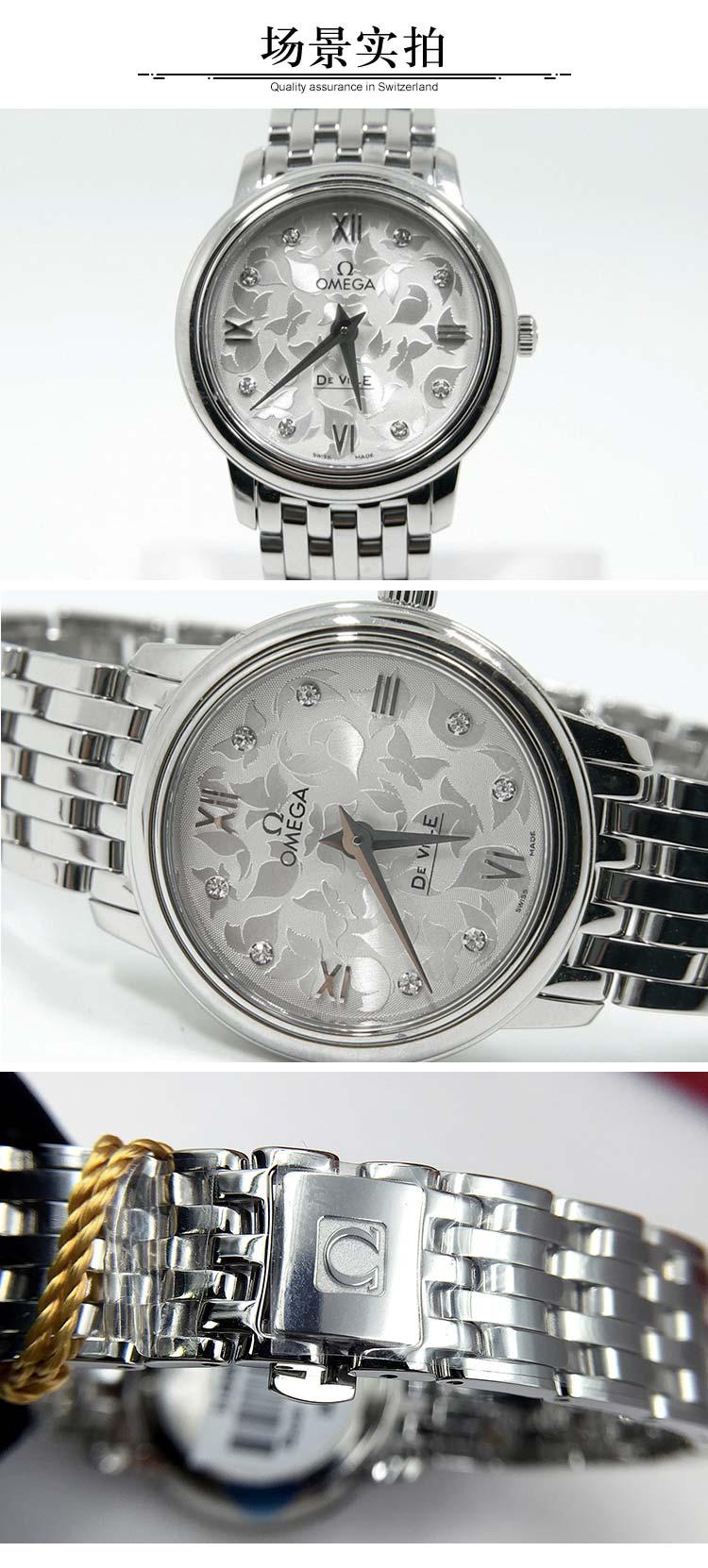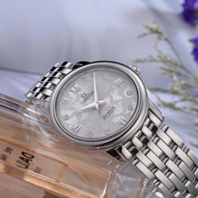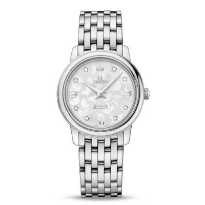 OMEGA/欧米茄瑞士手表 碟飞系列镶钻蝴蝶图案石英机芯女士腕表 钢带银盘424.10.27.60.52.001