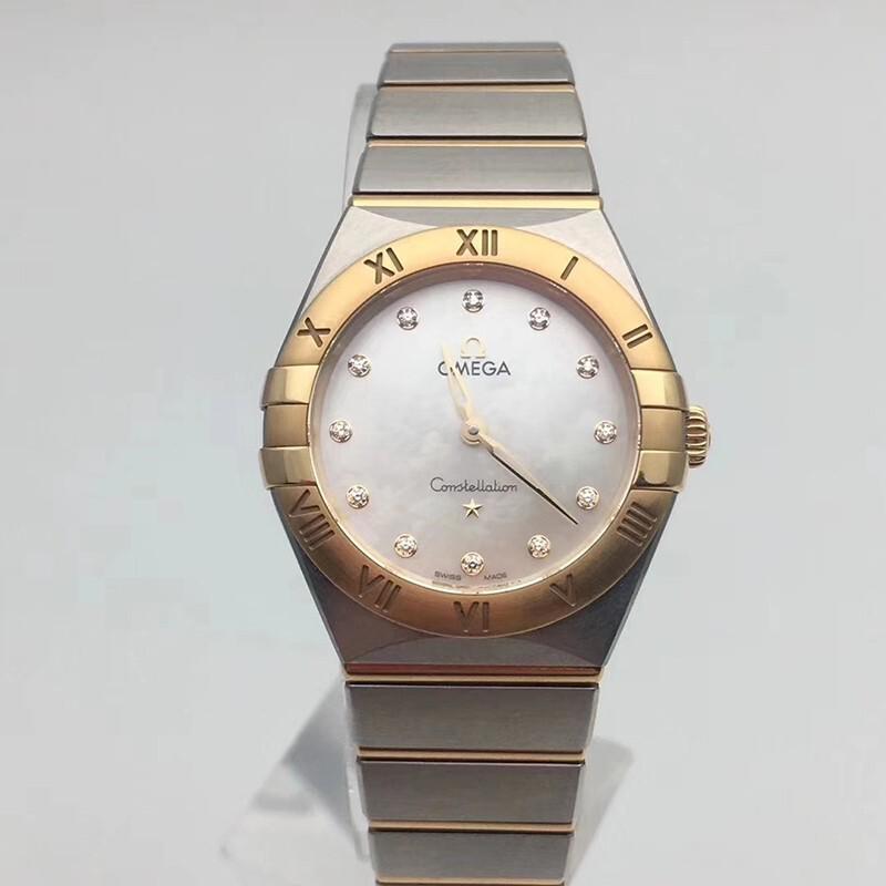 OMEGA/歐米茄瑞士手錶星座系列曼哈頓鑲鑽石英女士腕表鋼帶白盤131.20.28.60.55.002