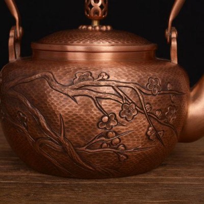 中藝盛嘉中藝堂收藏品孟德仁墨梅銅壺純手工紫銅壺燒水壺