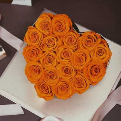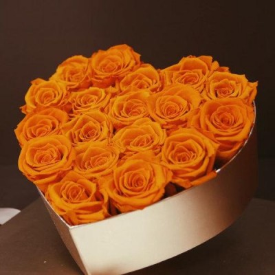 FlowerFour/FlowerFour 真心橙意18朵厄瓜多尔Roseamor心形永生玫瑰花盒