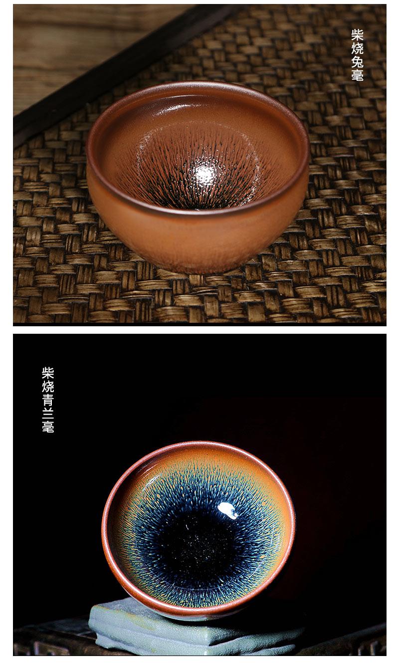 中藝盛嘉柴燒建盞周家勇手工功夫茶具茶盞青蘭毫兔毫主人杯品茗杯