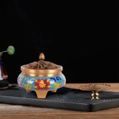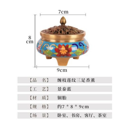 首頁 > 商務禮品 > 中藝盛嘉 > 中藝盛嘉景泰藍香爐珐琅銅純仿古三足香薰爐香檀香家用線香