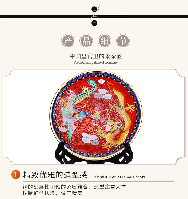中藝盛嘉景泰藍龍鳳呈祥觀賞盤裝潢盤銅胎掐絲琺瑯禮品家居擺件