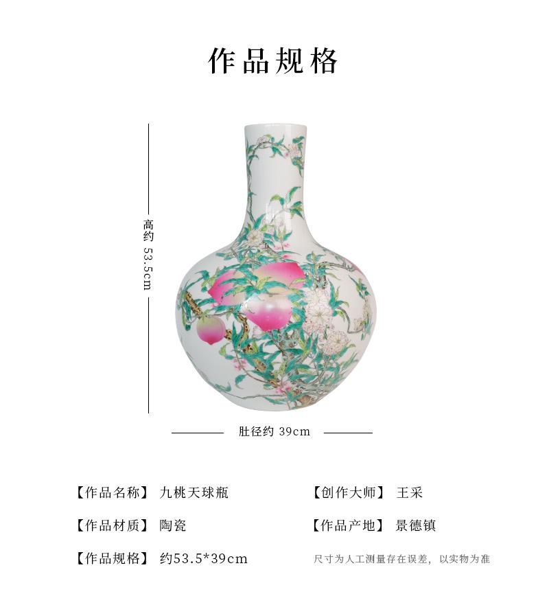 中藝盛嘉中藝堂收藏品王采景德鎮粉彩瓷九桃天球瓶