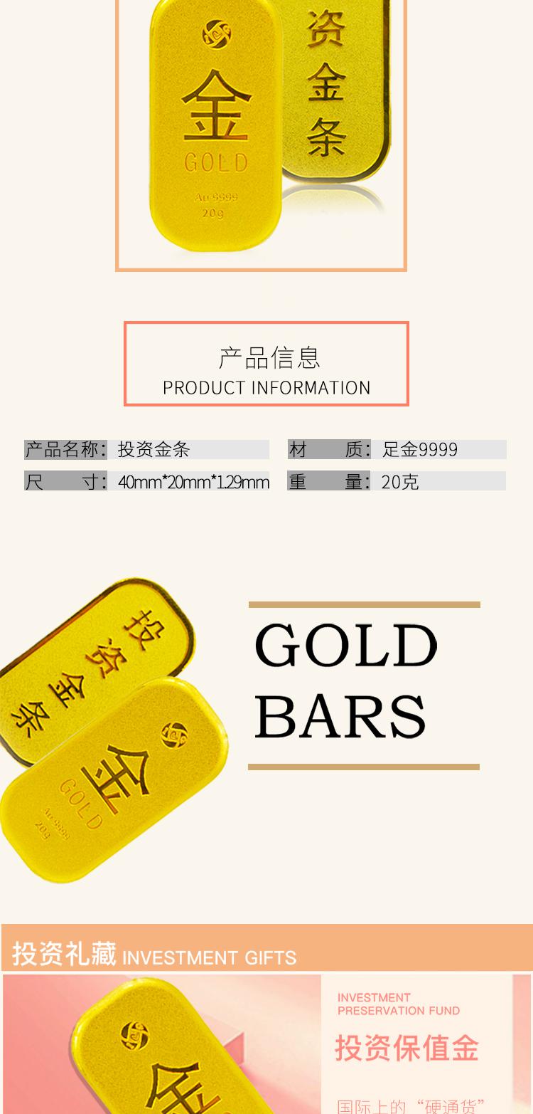 首頁 > 金銀投資 > 買金網 > maijinwang/買金網投資金條20克Au9999黃金/金磚純金20g支持回購順豐包郵投資送禮收藏