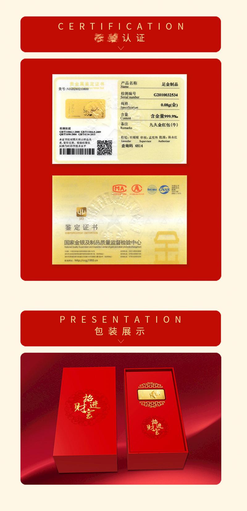 maijinwang/買金網徐悲鴻九久金牛年金條紅包999足金壓歲金幣黃金紅包賀歲紅包過年壓歲錢新年禮物年貨