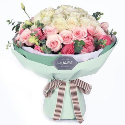 花礼/甜美公主/白玫瑰22枝,粉佳人粉玫瑰14枝,粉色桔梗5枝/七夕情人节礼物鲜花/当日达