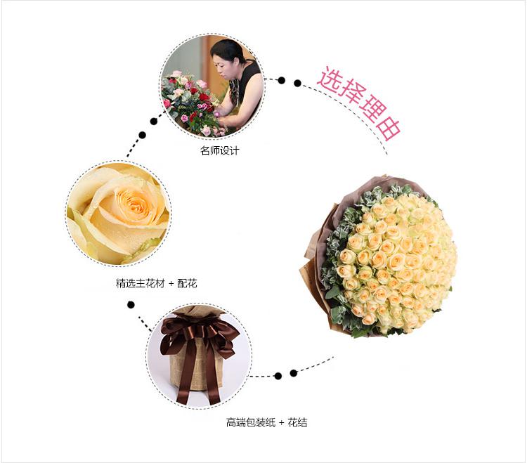 花礼/恋恋不忘/香槟玫瑰99枝/七夕情人节求婚生日礼物鲜花