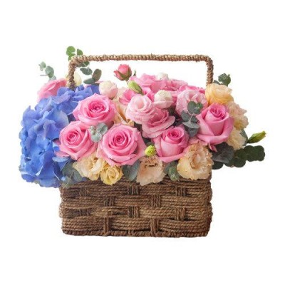 首頁 > 鮮花綠植 > 花禮 > 花禮/韓式花籃/平淡歲月/蘇醒玫瑰13枝,藍紫色繡球,香檳洋桔梗花籃/送人七夕情人節禮物鮮花/當日達