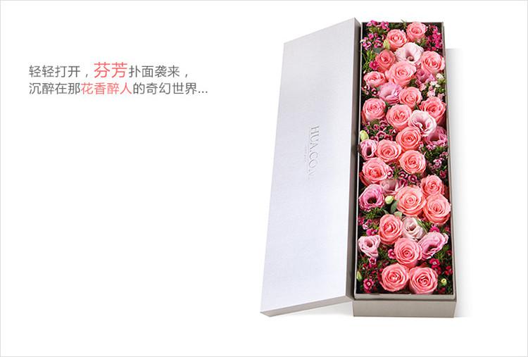 花礼/爱的小确幸/戴安娜粉玫瑰21枝,桔梗,石竹梅//七夕情人节礼物鲜花/当日达